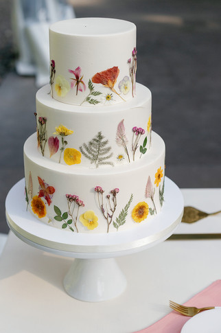 The wedding style leaned romantic and garden-inspired. Lauren looked every bit a princess in her tiara and veil, while Mitchell’s burgundy suit added a rich, modern contrast. The mix-and-match lilac and blush bridesmaid dresses brought softness and dimension, and small touches like satin pink napkins added a layer of elegant sophistication. Citrus fruits along the tables and their pressed-flower cake tied the aesthetic together in a way that felt both playful and refined.