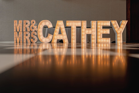 Julie and Brian were a match made in heaven, as were their style and Amaterra's modern architecture. Their sleek, black and white design throughout ceremony and reception was the definition of sophisticated elegance. Their wedding featured full, all-white floral arrangements, modern black chairs, a black and white checkered dance floor and bright marquee letters. We helped them secure the modern, black bentwood chairs for ceremony and reception, and build their minimalist tablescape.