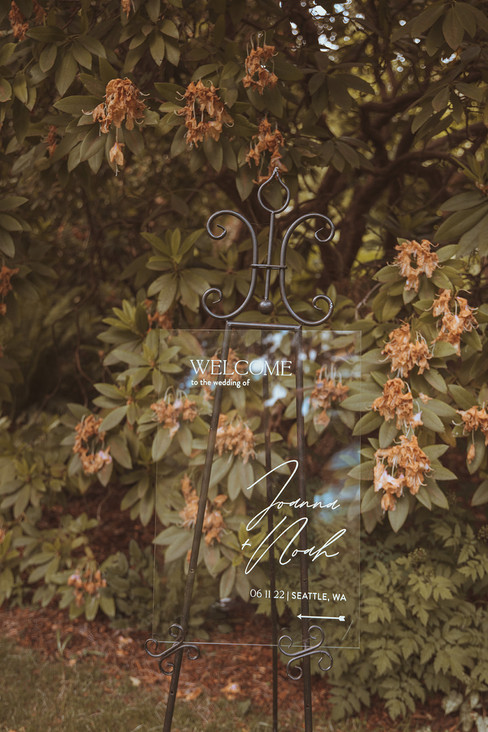 We were whisked away by this modern garden style wedding. Joanna and Noah were joined by their friends, family, and furry companion, to celebrate their love in true PNW fashion... With donuts. We also loved how their design was both whimsical and contemporary, with bright pink flowers that paired beautifully with the white, black and sage accents against a woodsy backdrop.