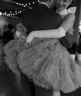 The wedding style was the perfect example of "Industrial Whimsy." Set against the venue’s iconic exposed brick and expansive warehouse windows, the couple layered in unique textures. From the bride’s voluminous, tiered lavender tulle dress and elegant white gloves to the groom’s sleek grey suit, every fashion choice felt intentional and fresh. Even their pup made a dapper appearance in a custom tuxedo for the festivities.