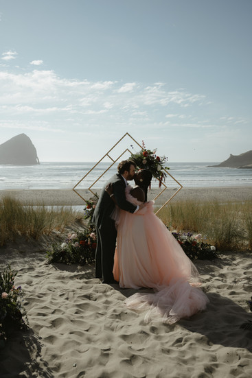 We know and love Oregon for its temperate weather, but weather at the beach can be unpredictable. Often, it’s rainy AND windy. Be sure that your wedding has a good rain plan in the case that your open-air beach ceremony or outdoor ceremony gets rained out. Tents will not hold up to the coastal wind, even if you found a rental company that will allow it on the beach. However, we live for days like Grace and Taylor's wedding (right) where it's warm and blue skies.