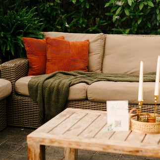 The wedding embraced a refined, organic romance. Terracotta, creamy ivory, and soft apricot tones complemented the lush greenery of the nursery, while layered textures throughout the space added warmth and depth.