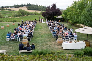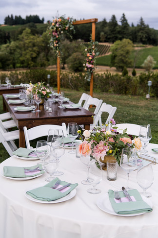 The elegant ballroom at Zenith Vineyard was designed with 20 foot ceilings, a wood burning fireplace, and a long porch that overlooks the vineyards. Nestled in the Eola-Amity hills, this venue is a must see for those dreaming of a classy wine country wedding with both indoor and outdoor dining options. Julia and Ross enlisted some of our favorite vendors to bring their vision to life including local seasonal blooms, signature cocktails, and ice cream!